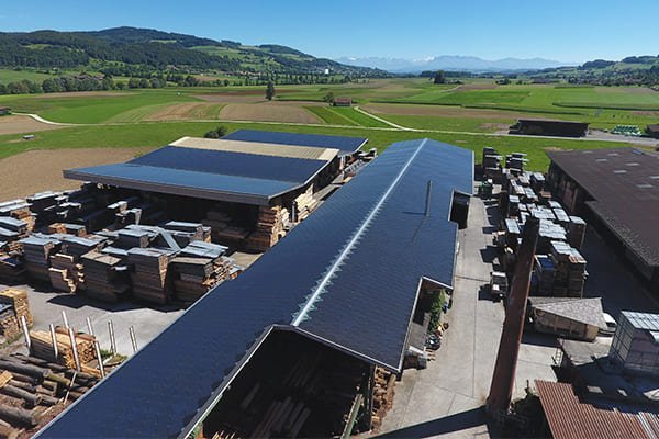Ce parc à bois a remplacé toutes les toitures de ses hangars de stockage par des tuiles solaires SunStyle. Depuis l’installation du toit photovoltaïque en 2013, SunStyle a permis à cette entreprise de se rapprocher d’une indépendance énergétique totale tout en réduisant ses dépenses annuelles en électricité. Des entrepôts aux bâtiments scolaires, les systèmes solaires SunStyle utilisent toute la surface productive du toit pour obtenir une production photovoltaïque et une étanchéité maximales, même à faible pente.